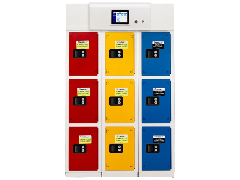 Smart Partitioned Chemicals Storage and Management Cabinet, Yellow/Red/Blue/White Optional Combination Colors, 3 Grid and 3 Column, with Filters