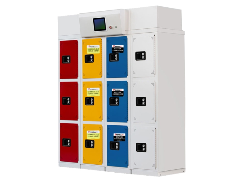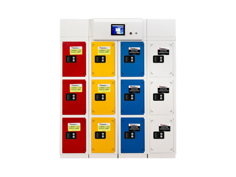 Smart Partitioned Chemicals Storage and Management Cabinet, Yellow/Red/Blue/White Optional Combination Colors, 3 Grid and 4 Column, with Filters
