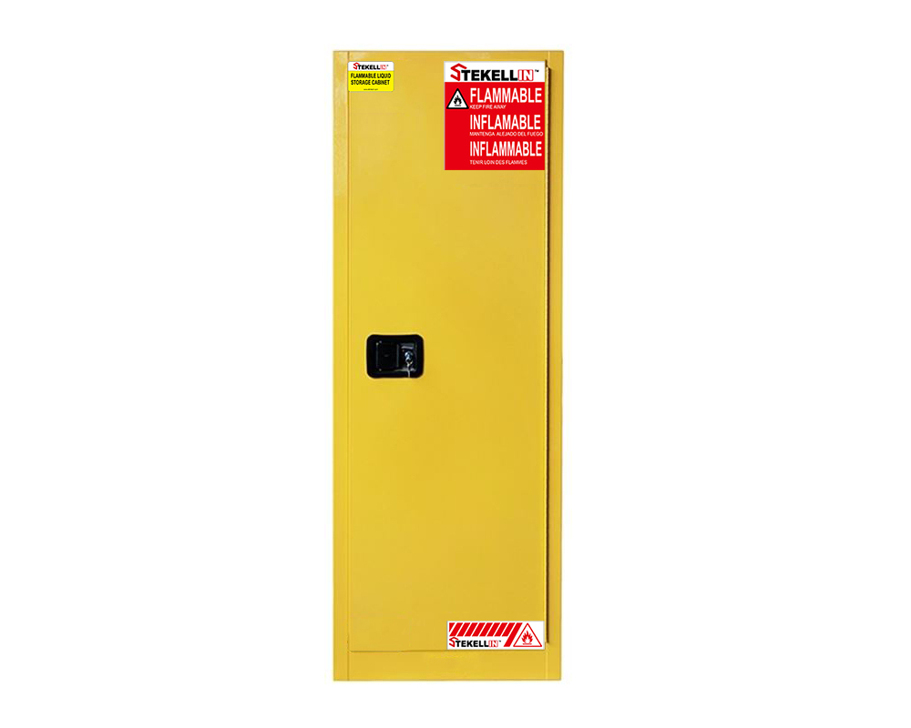 Slimline Flammable Safety Cabinet, 22 Gallon, Yellow, Manual/Self-closing Door Type (22 Gal/83 L)