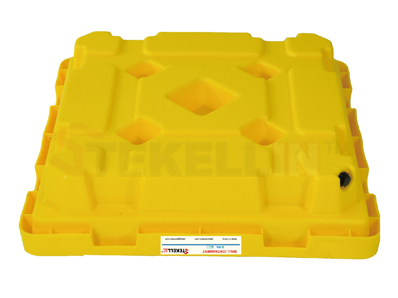 PE Spill Containment Deck With Drain, Yellow/Black,1 Drum